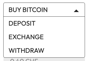 Once you are here, you will automatically see all of your Cryptocurrency assets. Please select the desired currency and then click on the arrow pointing down button at the top right of the Currency overview and choose “Deposit”.